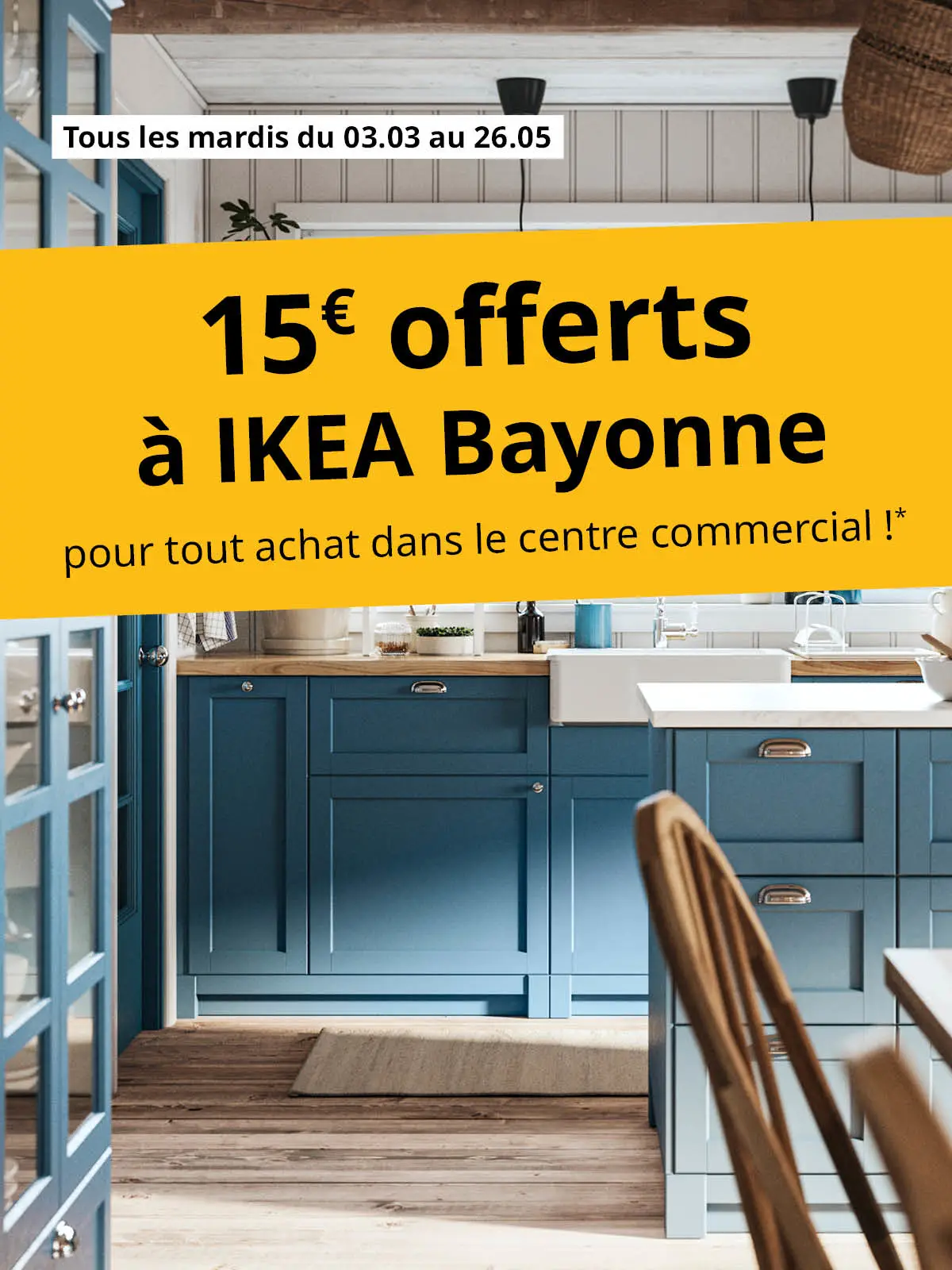 Tous les mardis du 3 mars au 26 mai 2026 bénéficiez de 15€ offerts à IKEA Bayonne pour tout achat dans le centre commercial* !